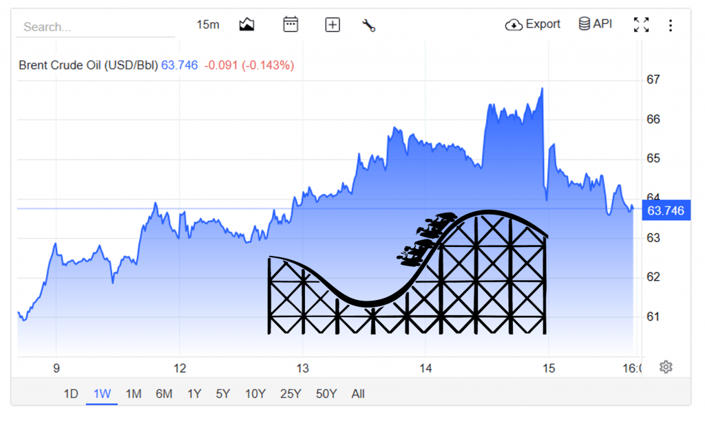Le montagne russe dei prezzi del Brent in questi giorni. Fonte: Trading economics