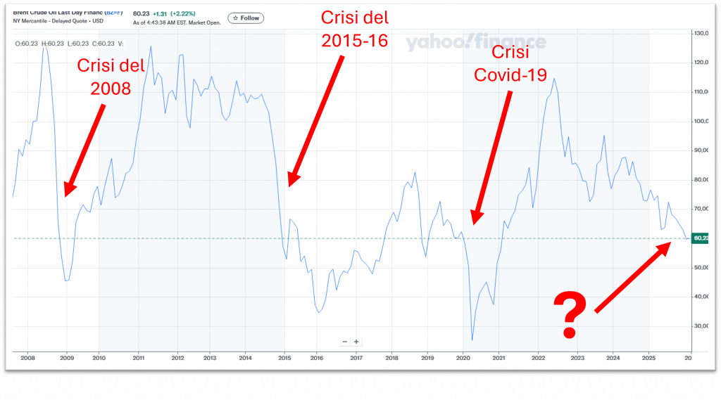 La storia recente insegna che crolli repentini del prezzo del greggio spesso precedono crisi sistemiche. Non è solo una questione di minori consumi energetici, ma di un brusco rallentamento dell’intera attività economica mondiale.